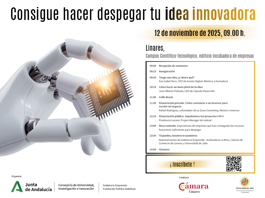 11:00 a 13:30 | Edificio 1,2,3, emprende. C/Federico Mayor Zaragoza, s/n, 23009, Jaén.